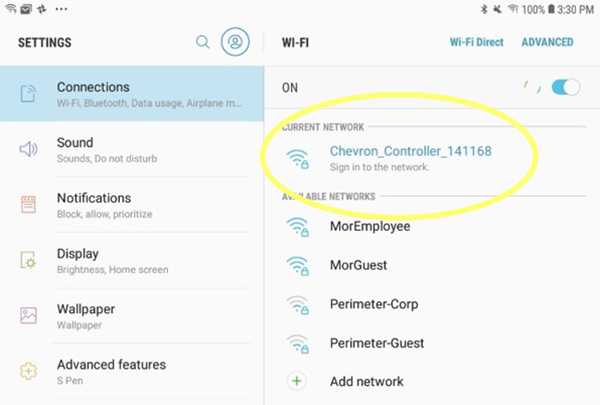 Access Point: Look for the WiFi network labeled "Chevron_Controller_141168" (or something similar on any WiFi-enabled device.